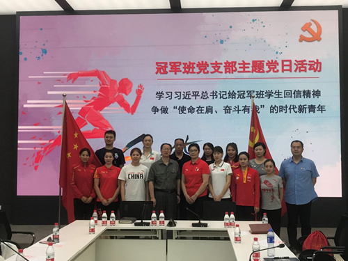 最后,大家合影留念。本次活動共計三個小時,冠軍班學生紛紛表示此次活動更加激勵自己要時刻牢記習近平總書記的囑托,在訓練和工作中一定要有“使命在肩,奮斗有我”擔當,繼續帶頭拼,加油干,為建設體育強國多做貢獻,為社會傳遞更多正能量,也為學校的發展建設貢獻自己的智慧和力量。