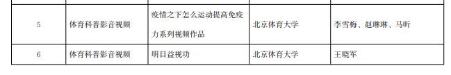 5月12日,國家體育總局辦公廳、科技部辦公廳公布了首批全國優秀體育科普作品名單,本次入選作品共有38部。北京體育大學及北京體育大學出版社報送的6部作品經過為期一年的網絡展播、公眾評選和專家組評議,最終入選首批全國優秀體育科普作品。
