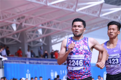 圖為阿力木江·熱合麥提在比賽途中(左一)