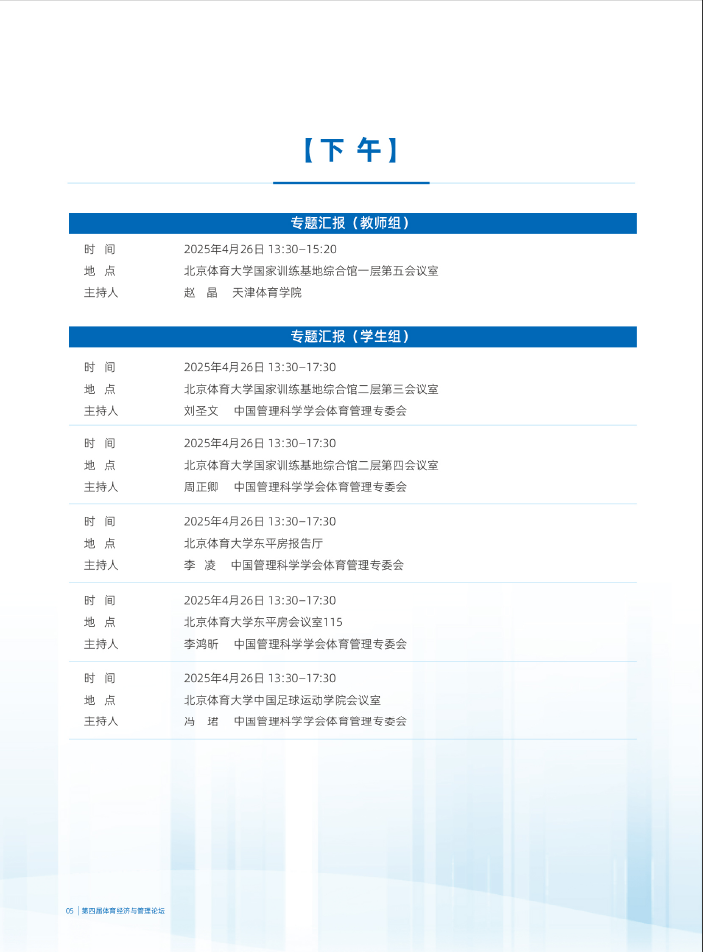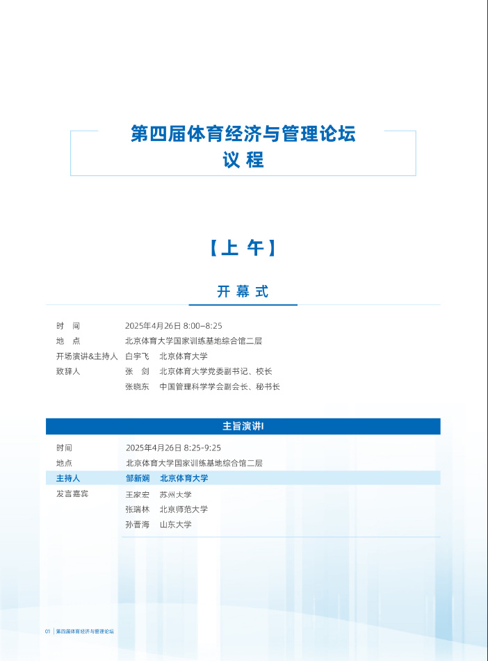 第四屆體育經(jīng)濟(jì)與管理論壇議程