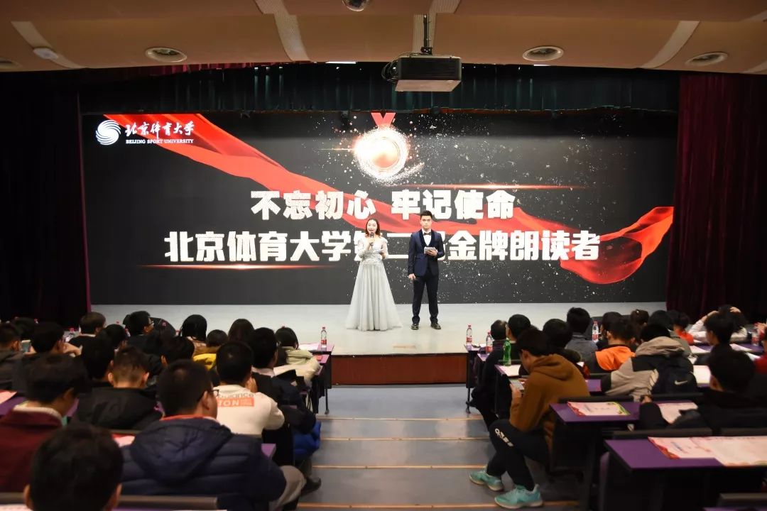 2019年11月22日,北京體育大學第二屆校園讀書文化節金牌朗讀者活動在卓越報告廳舉行。我校師生共聚一堂,享受閱讀之美,以文化滋養生命,以愛國情懷激勵奮進腳步。通過誦讀領袖詩詞著作、傳遞體育強國夢想、講述青春奮斗故事,進一步貫徹落實“不忘初心、牢記使命”主題教育,進一步貫徹落實習近平總書記給我校2016級研究生冠軍班回信精神,教育引導廣大師生堅持愛黨愛國愛社會主義高度統一、堅定體育報國理想信念、堅持“使命在肩,奮斗有我”的新時代責任擔當,以青春奮斗奉獻體育強國事業。