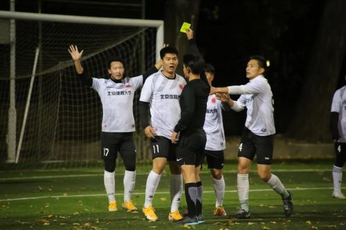 進入北京體育大學后他毅然決然地選擇了足球(裁判班)方向,很多人納悶,朱文博的“冠軍夢”怎么突然轉變?yōu)榱恕安门袎簟蹦兀繉Υ耍煳牟┯兴毜降囊娊猓骸肮谲姡敲棵\動員的夙愿。我同樣擁有這樣一個冠軍夢。”朱文博曾奪得北京市校園足球聯(lián)賽冠軍,從C羅手里接過獎杯,也獲得過全國前八的好成績。但讓他記憶最深刻的是初一剛開始參加百隊杯時,那時的他還不太清楚規(guī)則,發(fā)界外球總是違例。當時一名執(zhí)法初一組淘汰賽的裁判員,不僅沒有斥責他們更是十分耐心地指導他們如何擲界外球。