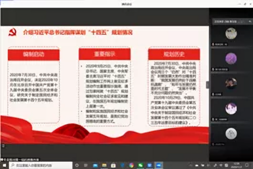 會上,張榮子首先帶領同學們觀看了《新聞聯播》中有關十九屆五中全會內容的節選。