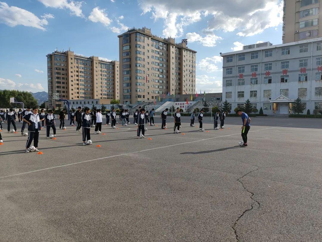 孩子們足球基礎薄弱,就從最簡單的身體控制和簡單帶球教起,針對技戰術訓練中的基礎環節,重新編排“足球操”,主要訓練目前校園足球中需要重點培養的腳下盤球、控球、傳球等動作。并將足球操作為學校的課間操,加以重點練習。
