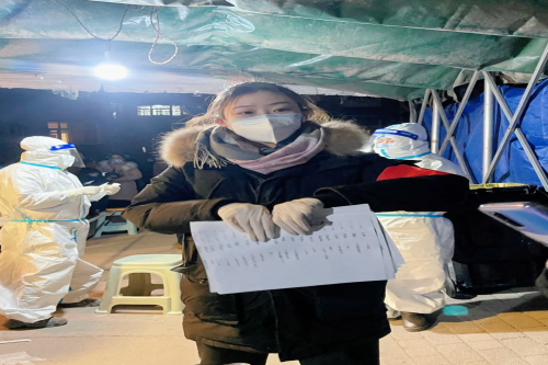 在全市全員核酸檢測前,我積極幫助居委會收集小區核酸檢測所需的個人信息。天氣寒冷,但一想到我是在為社區出力,為抗擊疫情做貢獻,我就有了不竭的動力。居民們一聲聲的感謝與贊揚更讓我感到有一股暖流在心中流淌。