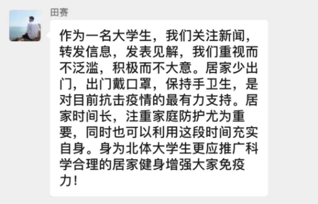 自新型冠狀病毒感染的肺炎疫情發生以來,黨中央、國務院作出重要部署,全國上下萬眾一心、眾志成城共抗疫情。當前,疫情防控工作到了最吃勁的關鍵階段,疫情防控的人民戰爭、總體戰、阻擊戰進入了決戰階段。在新學期伊始之際,為進一步引領帶動廣大青年學習抗疫一線的青年事跡,宣揚特別能吃苦、特別能戰斗的精神和志愿服務精神,共青團北京體育大學委員會在全校集中開展“共同戰‘疫’的青年力量”主題團日活動。