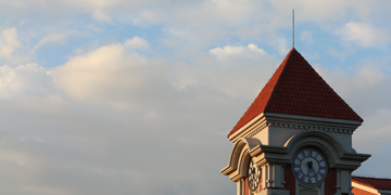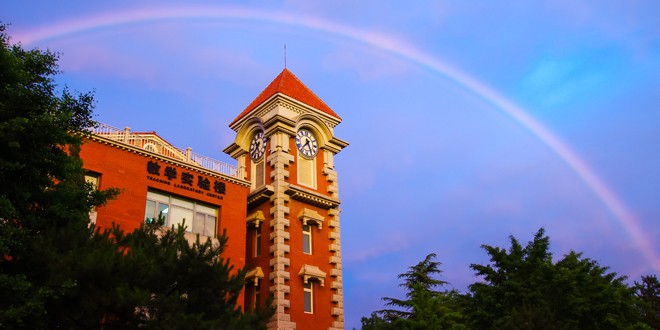 《彩虹下的鐘樓》攝影:圖書館 胡鶴覺
