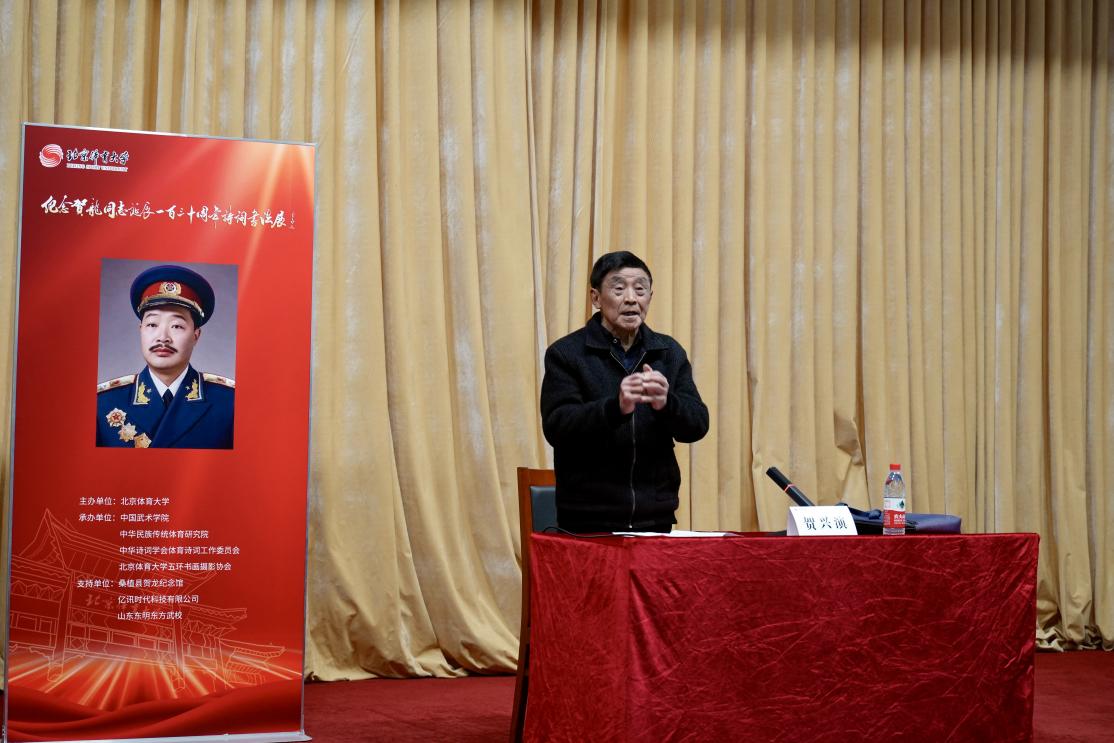 王鈺清代表兄弟院校致辭,他回顧了賀龍元帥為新中國體育事業(yè)奠基的卓越貢獻,并表示愿與各體育院校攜手并肩,共同踐行體育強國使命。他現(xiàn)場賦詩,以《七律·致北體大賀龍班》,寄語北體大賀龍班不忘初心,追求卓越。