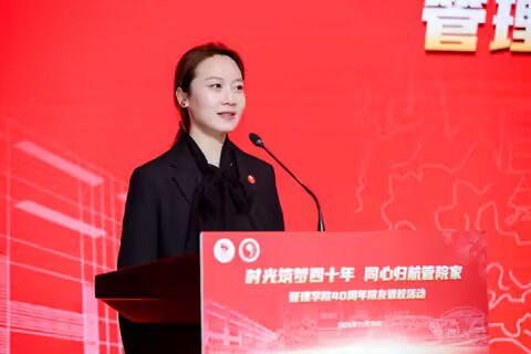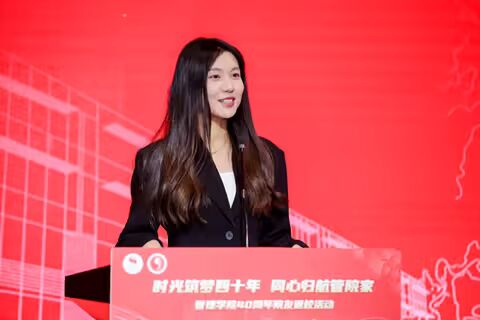 在“共敘過往·共話未來”院友代表發(fā)言環(huán)節(jié),從80年代到新時代,八位院友依次站上發(fā)言席。他們講述在管院的成長故事,分享奮斗路上的汗水與收獲,也真誠地為母校未來發(fā)展出謀劃策。一字一句,都是對“家”的眷戀,也滿載對“家人”的期盼。