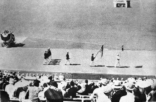 中國代表團出席第10屆洛杉磯奧運會開幕式。(照片來源:新華社)