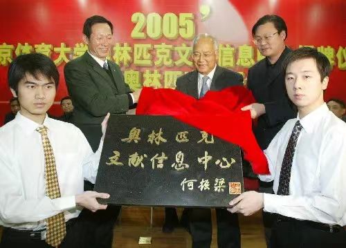 2005年12月28日,奧林匹克文獻信息中心揭牌儀式在北京體育大學舉行,中國奧委會名譽主席、國際奧委會文化和教育委員會主席何振梁(中)等為奧林匹克文獻信息中心揭牌。該中心是一個集中、外文奧林匹克圖書、期刊、聲像資料等內容于一體的文獻中心。