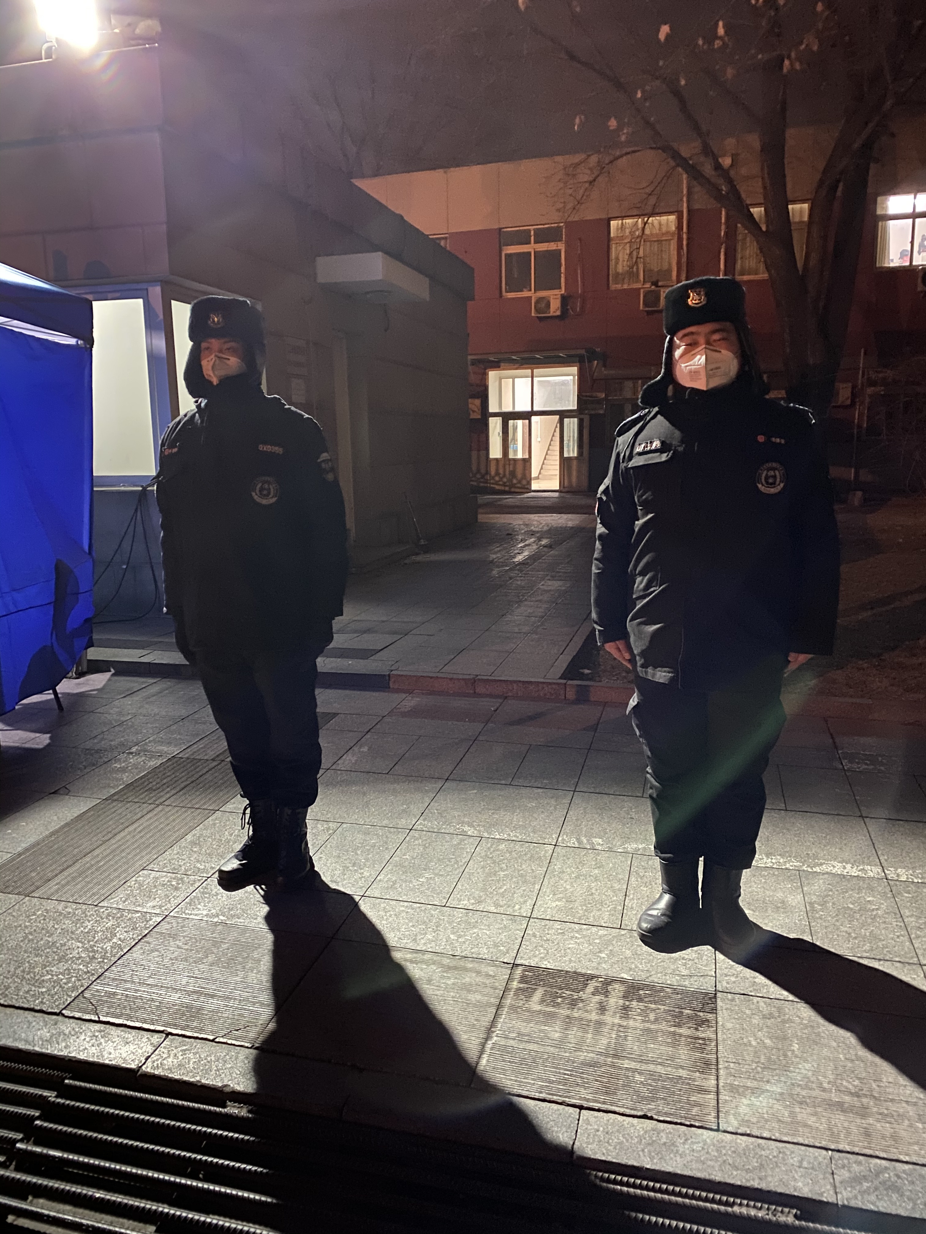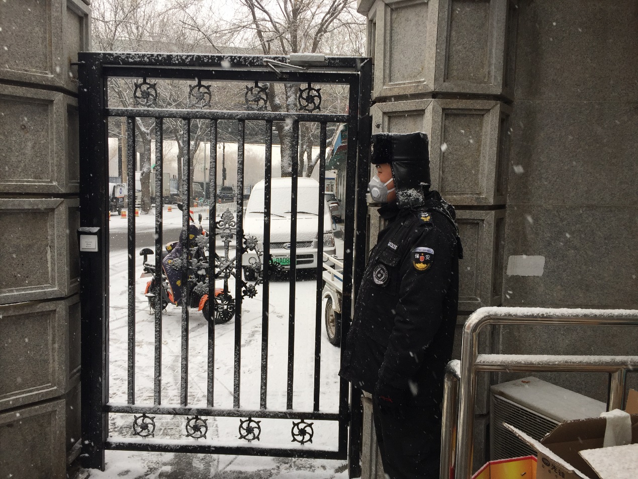 在防控工作中,保衛部與組織部、校醫院、后勤管理處等部門密切配合,落實疫情防控工作,除在家自我觀察人員外,全員動員全員上崗,先后參與了校門封閉值守、國家隊訓練基地區域封閉夜間施工、昌平區馬池口鎮臨時隔離觀察點值守、各主要辦公區域、家屬區頤清園社區疫情防控值守等安保工作。特別是近日,北京連降大雪,寒風刺骨,保衛部從領導到安保人員均櫛風沐雪,不分白天黑夜地奮戰在學校疫情防控的工作中。