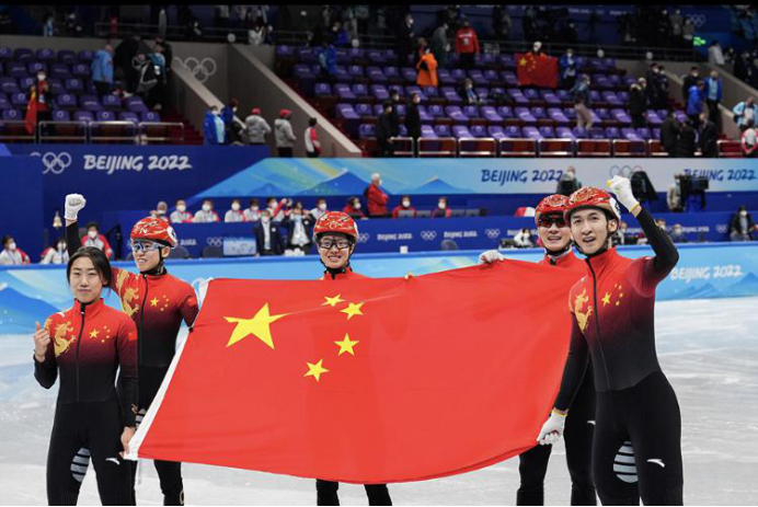 2022年,北京冬奧會短道速滑混合團體接力決賽,我校研究生冠軍班學生武大靖、曲春雨、范可新、任子威、張雨婷奪金