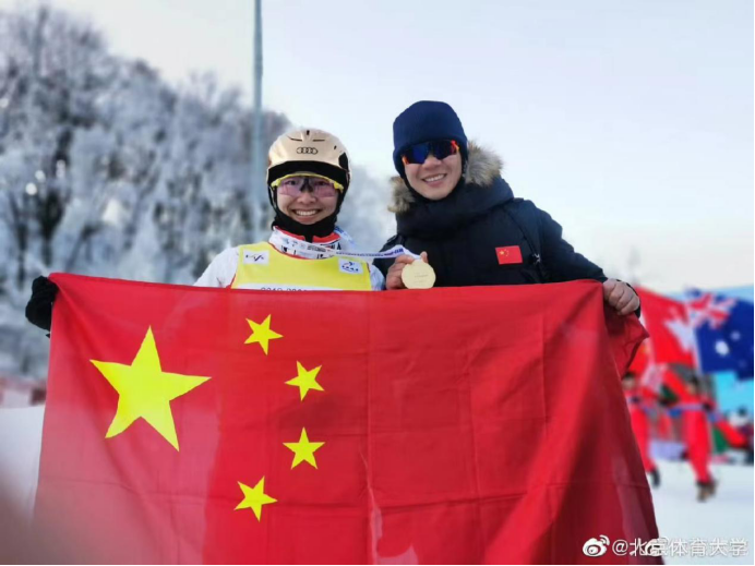 2019年12月22日吉林長春,徐夢桃以105.53分獲得國際雪聯自由式滑雪空中技巧世界杯女子組冠軍